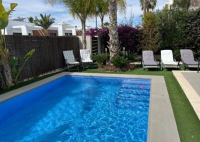Située au cœur de Vistabella Golf, la villa est à quelques pas du parcours 18 trous. Vous trouverez également restaurants, bars, boulangerie, supérette et pharmacie à distance de marche. Complexe sécurisé, ambiance conviviale et accès rapide aux plages d’Orihuela Costa et Torrevieja (15–20 min). Aéroports d’Alicante et Murcie accessibles en 35–40 minutes.